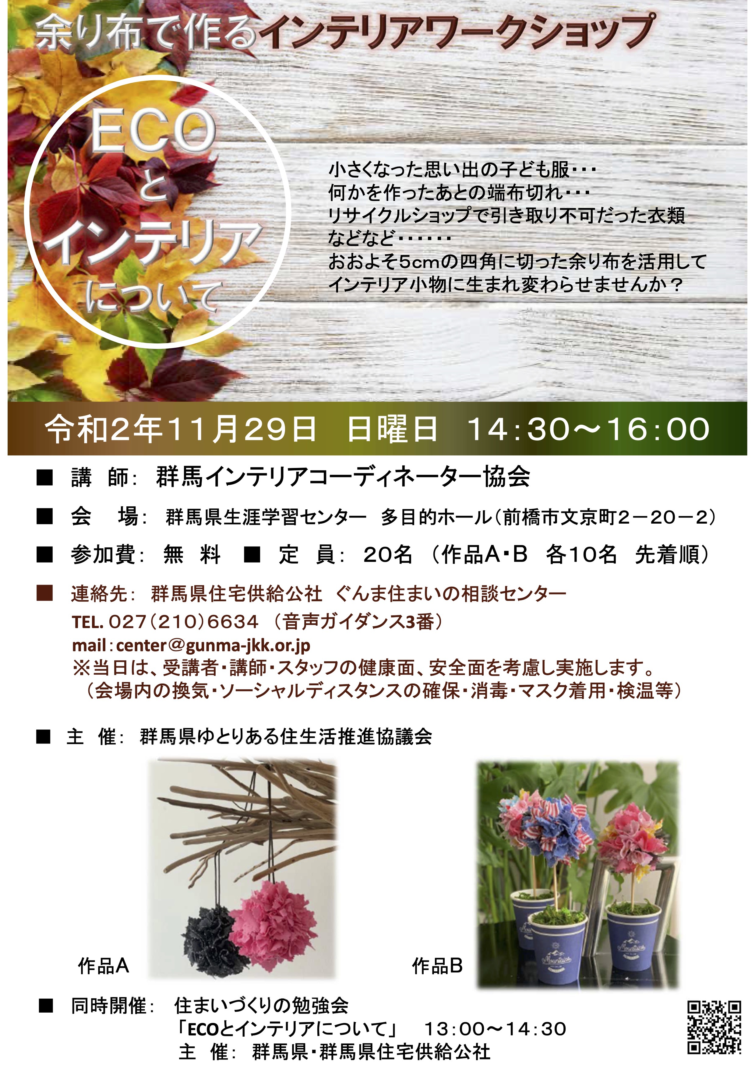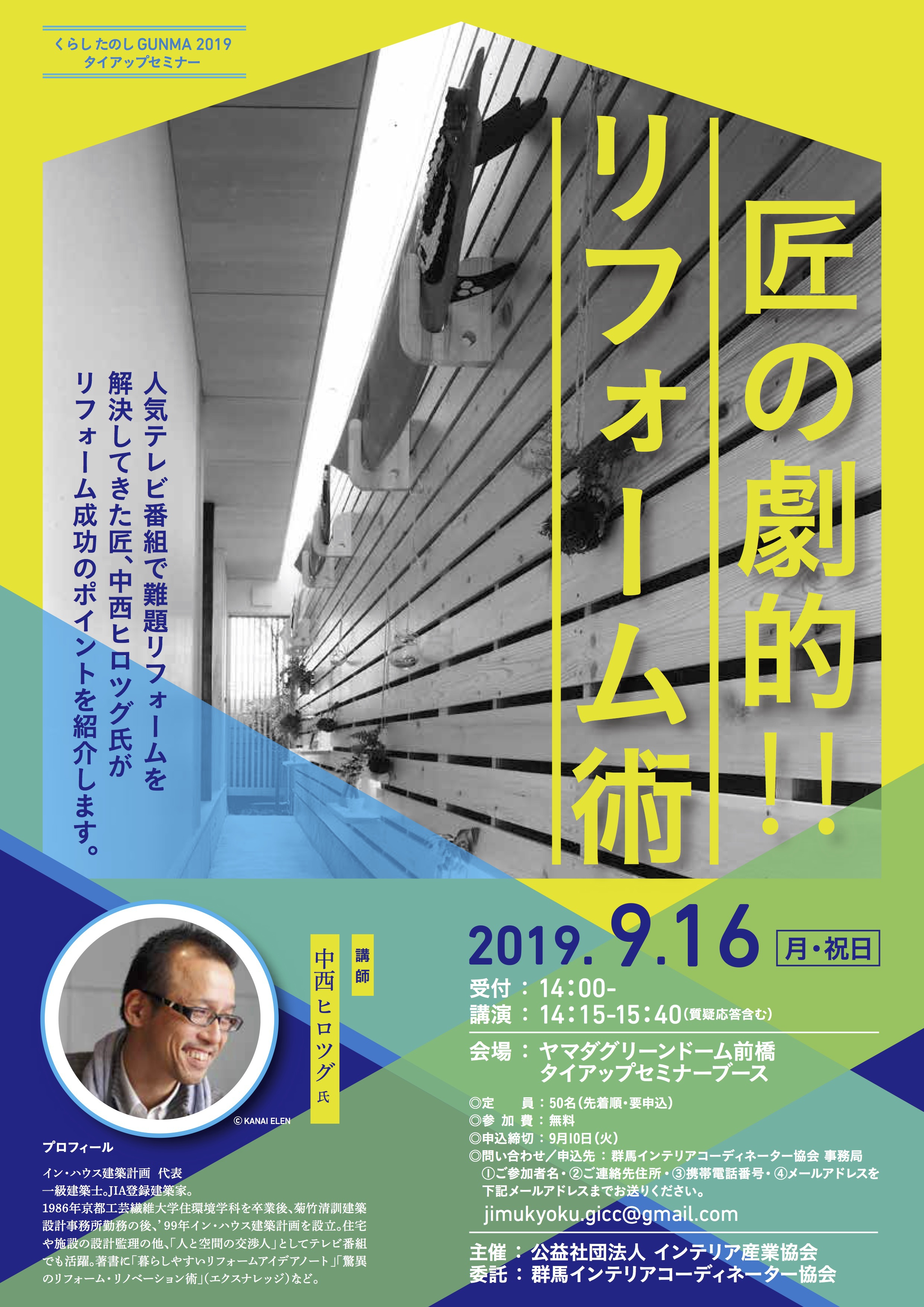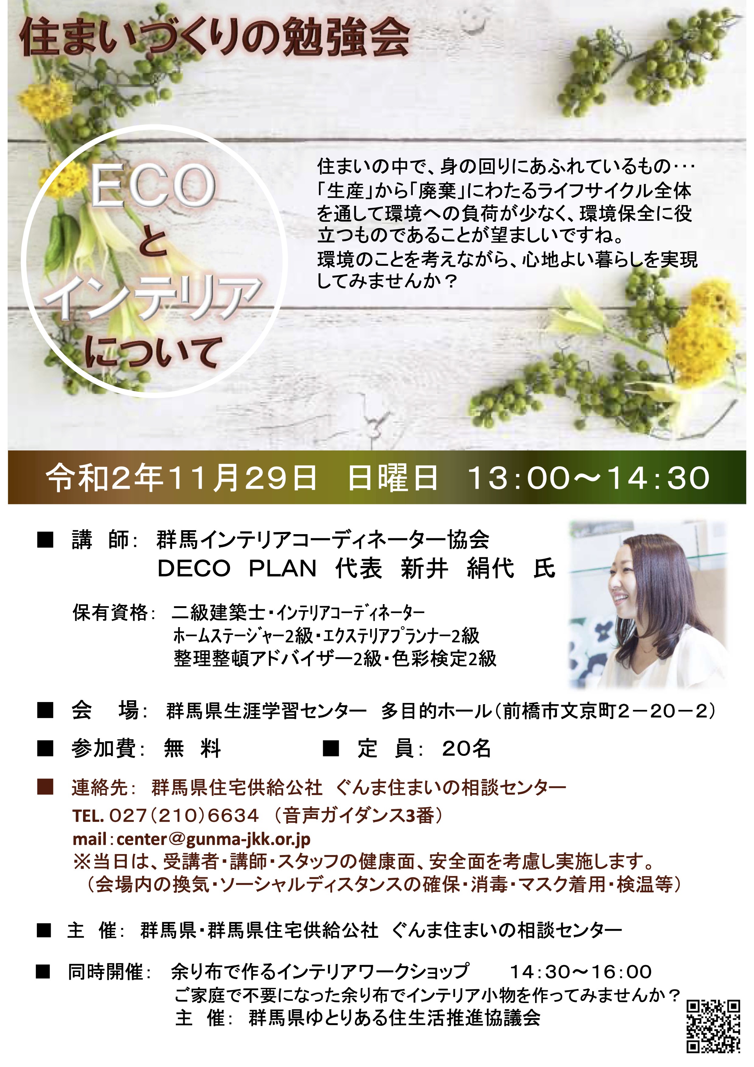 【問い合わせ/申込先】群馬インテリアコーディネーター協会 事務局冷水まで