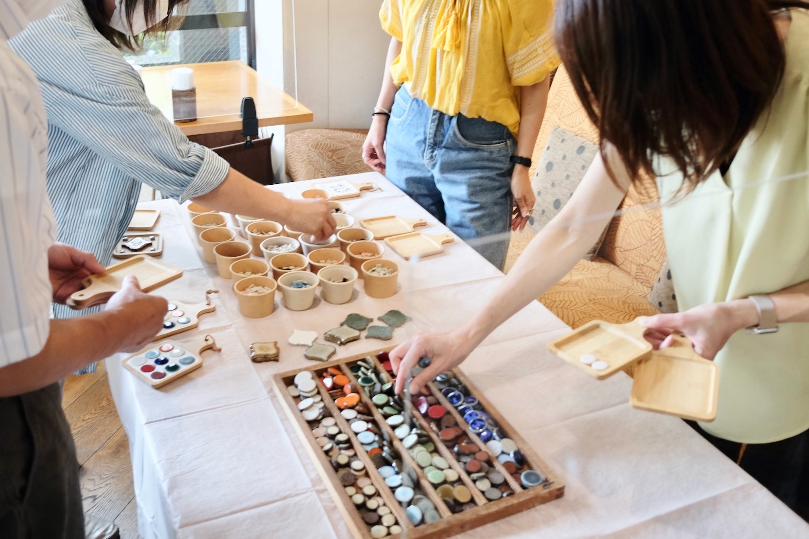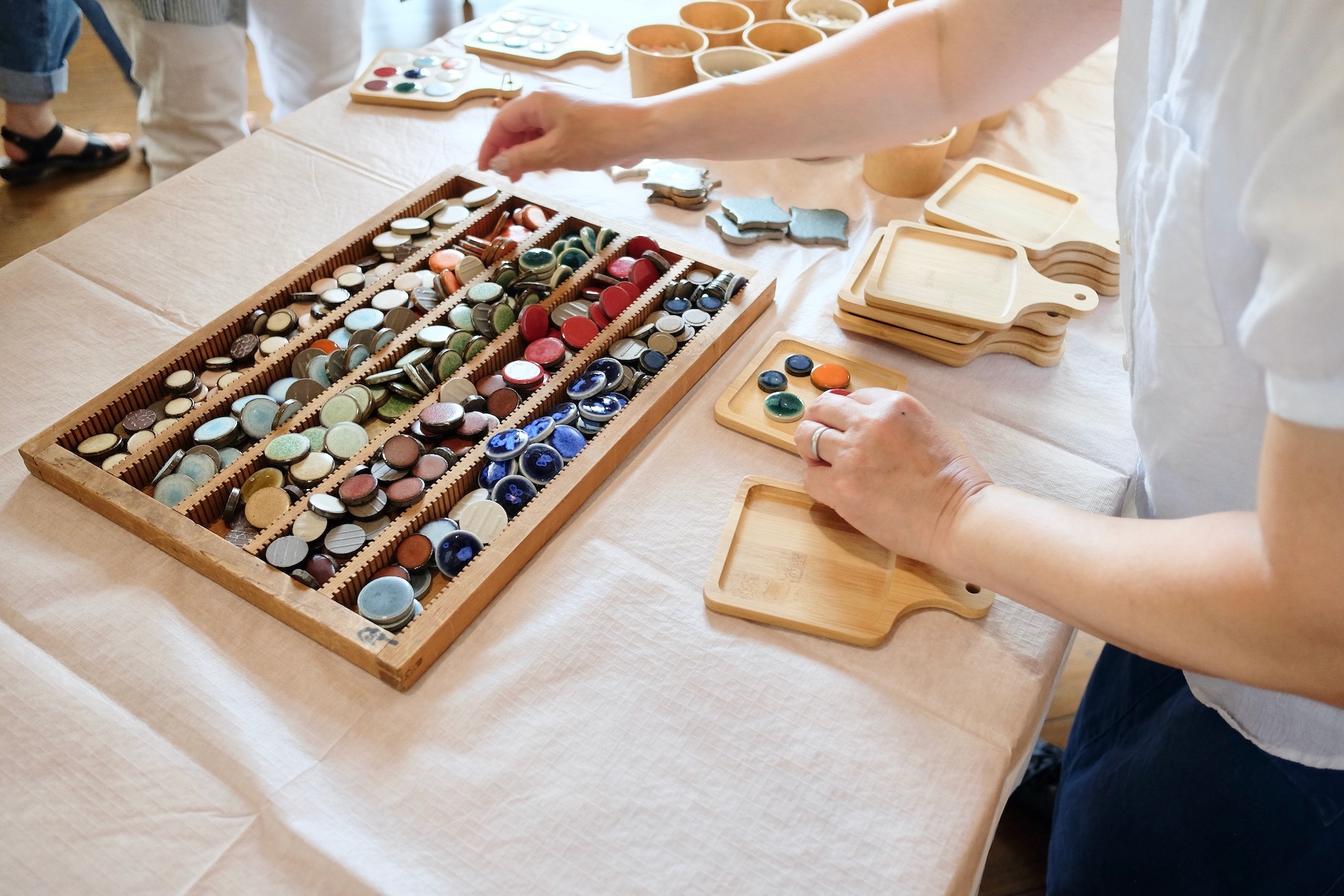 様々なタイルを組合せたオリジナルの鍋敷きは、参加者それぞれの個性が溢れ、どれも素敵な作品に仕上がりました。